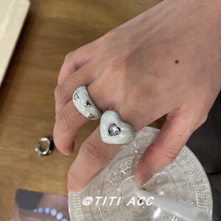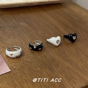 韩国博主同款 滴釉戒指女爱心黑色珠光白设计感可爱锆石镶嵌食指戒