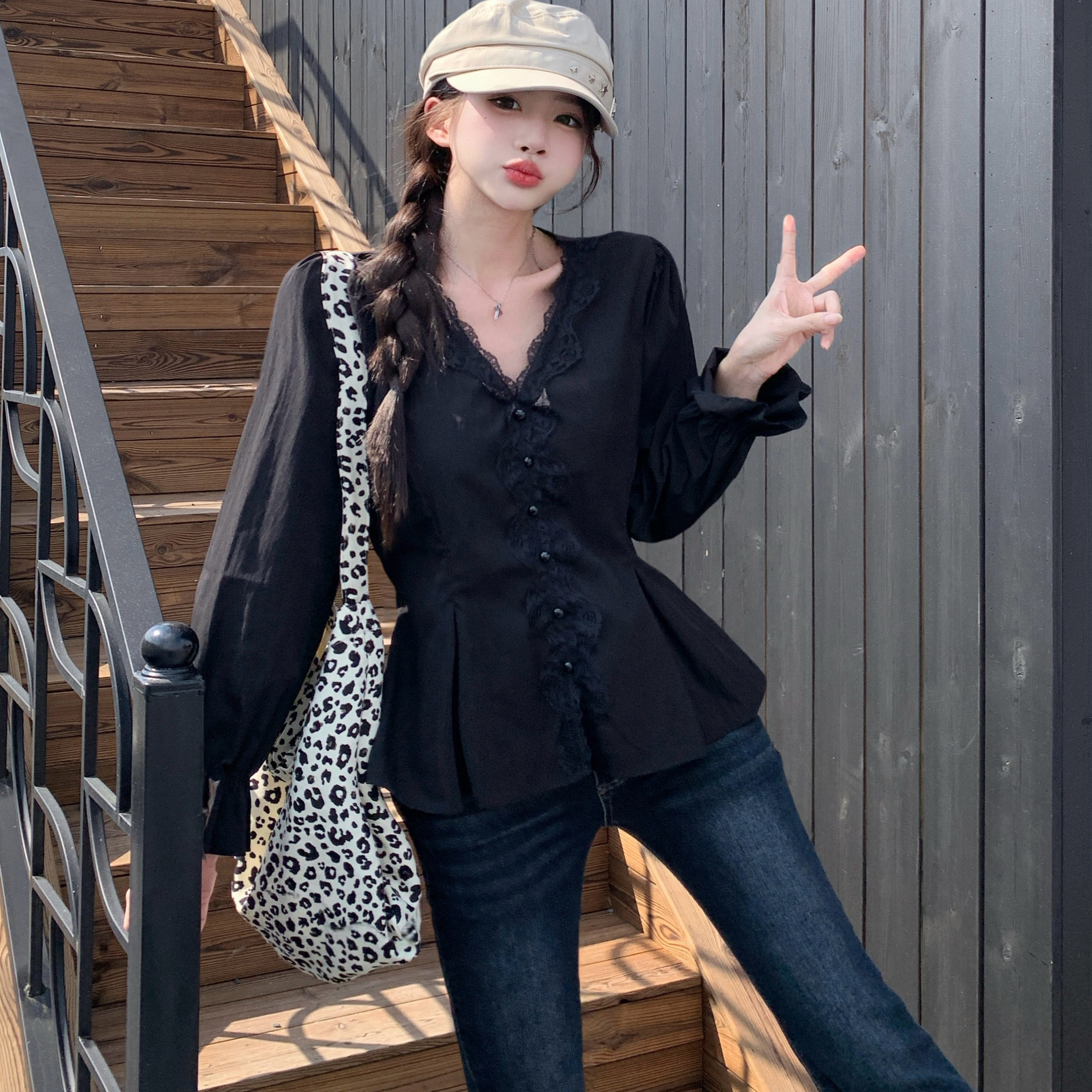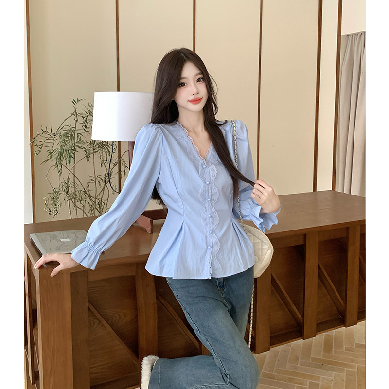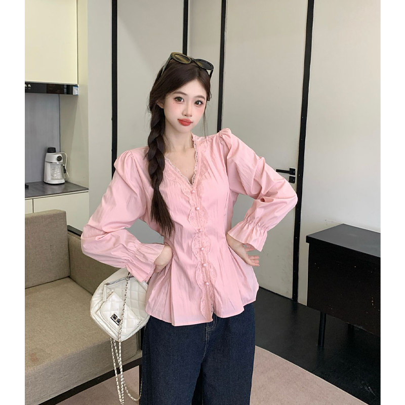衬衫 蕾丝拼接长袖 女显瘦上衣 胖MM法式 2026春新款