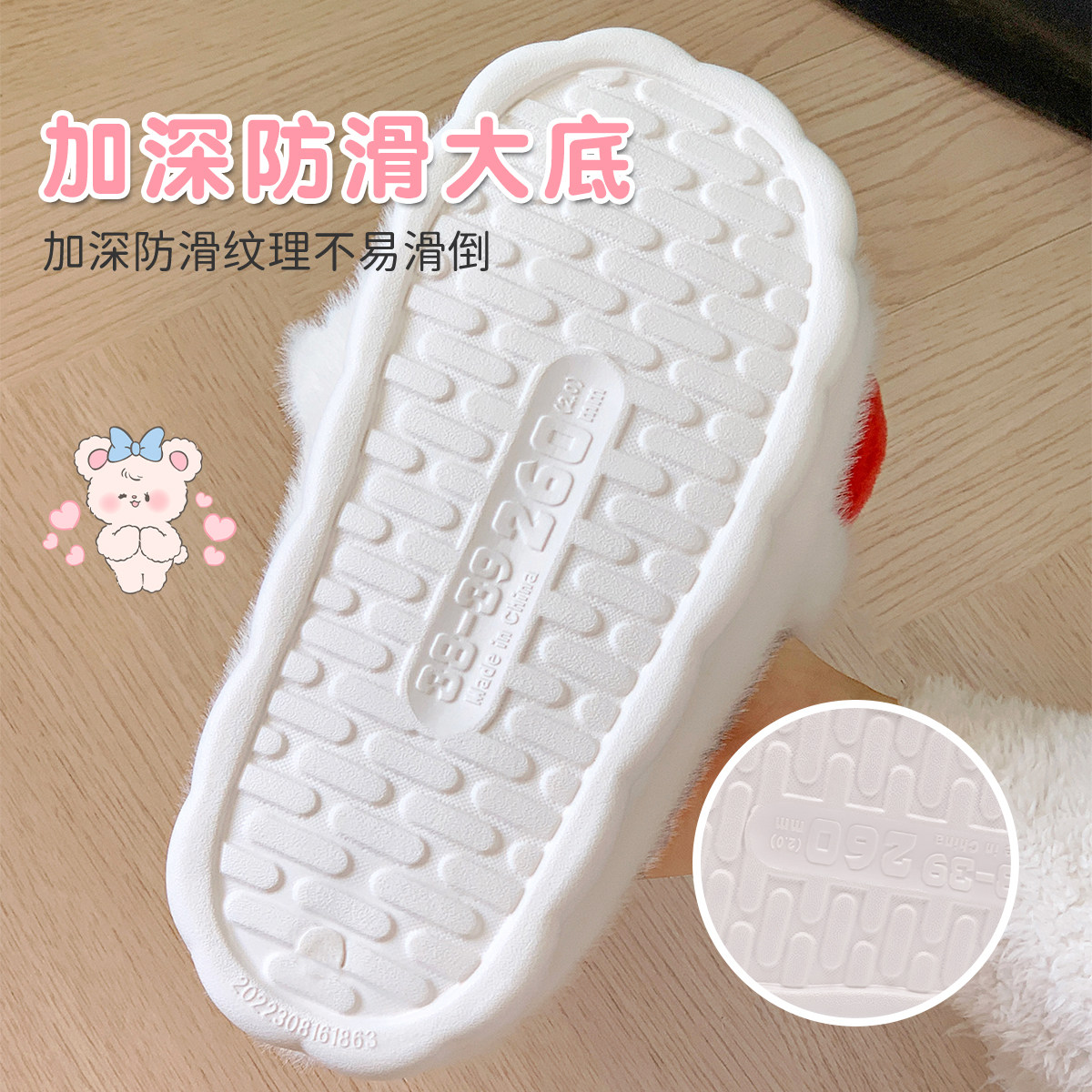女款 洁丽雅棉拖鞋 室内家居防滑保暖厚底毛毛拖鞋 秋冬季 女2026新款