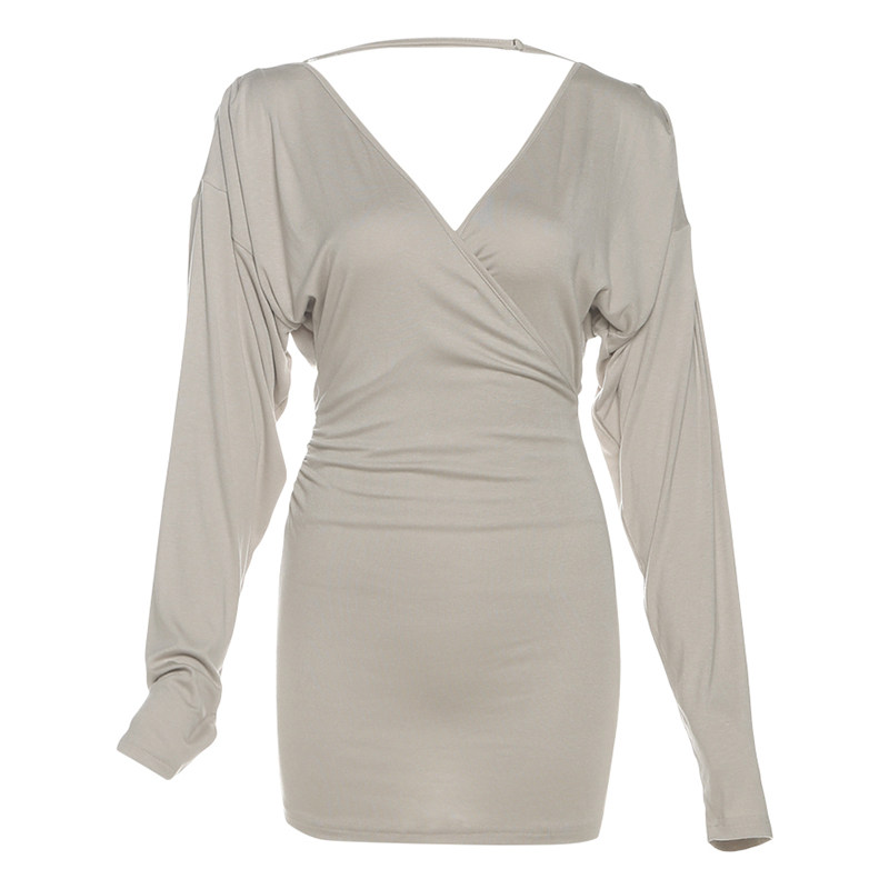 怪诞女孩 通勤复古V领褶皱外搭短裙蕾丝露背包臀连衣裙两件套 法式