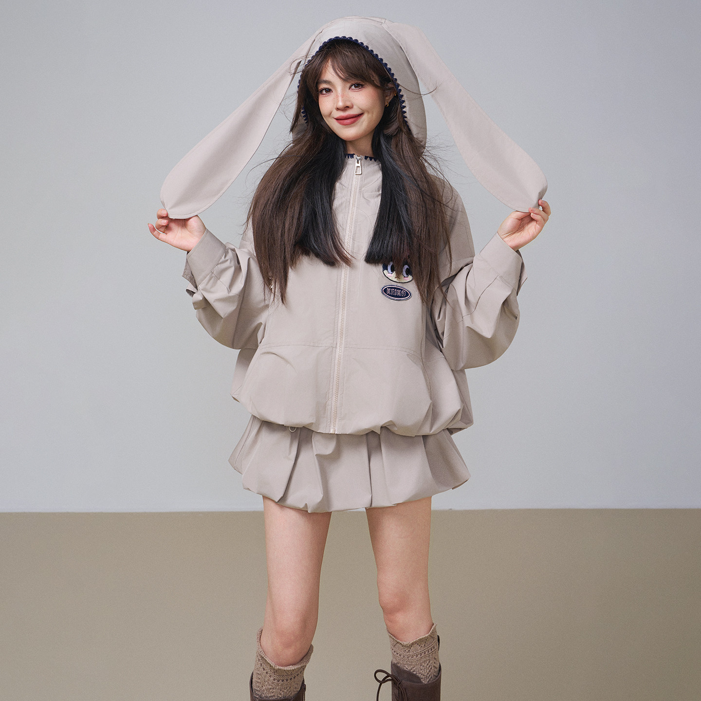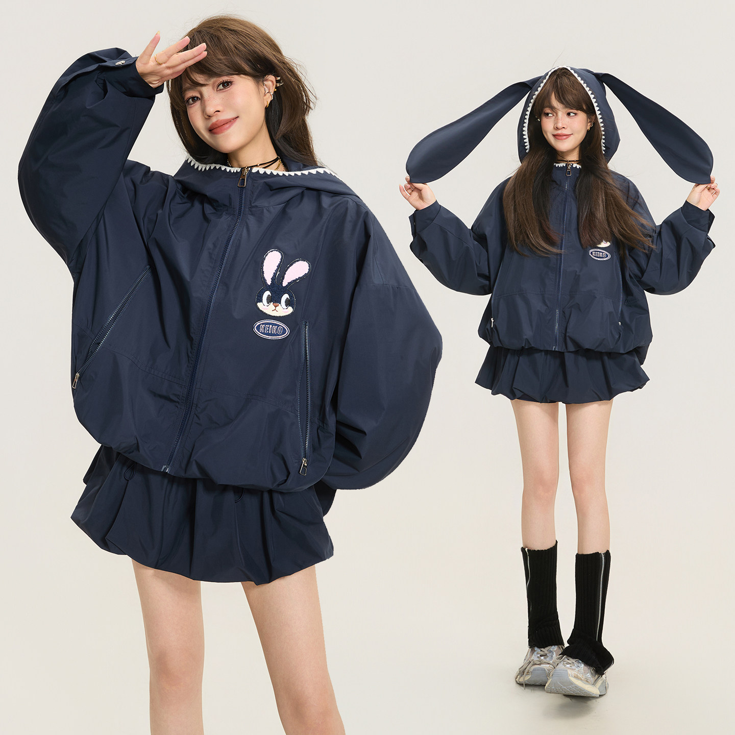 外套春季 兔耳朵连帽短款 户外花苞廓形休闲上衣 科技三防料 KEIKO