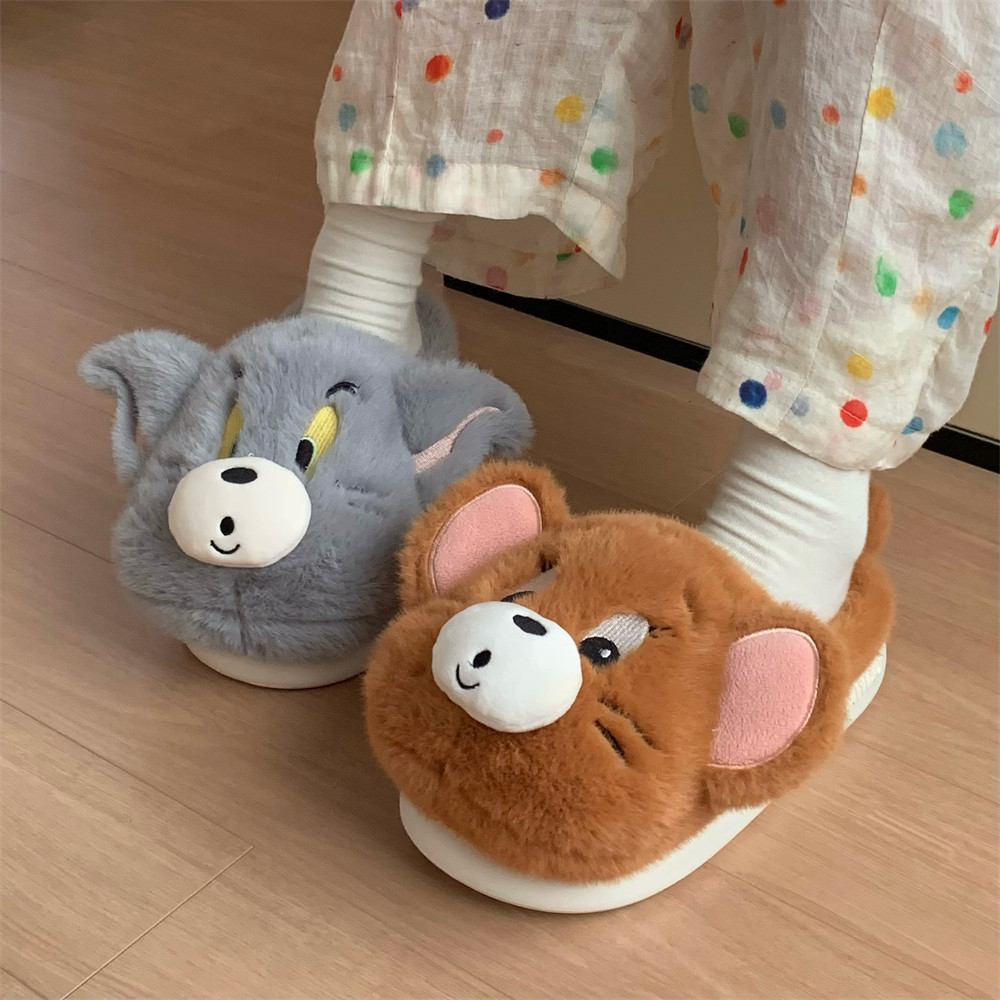 男士 可爱汤姆杰利鼠情侣毛毛鞋 棉拖鞋 猫和老鼠防滑冬季 女士 正版