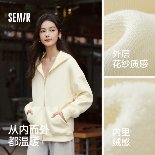 森马外套女摇粒绒落肩宽松慵懒卫衣白色冬2025新款 简约连帽夹克