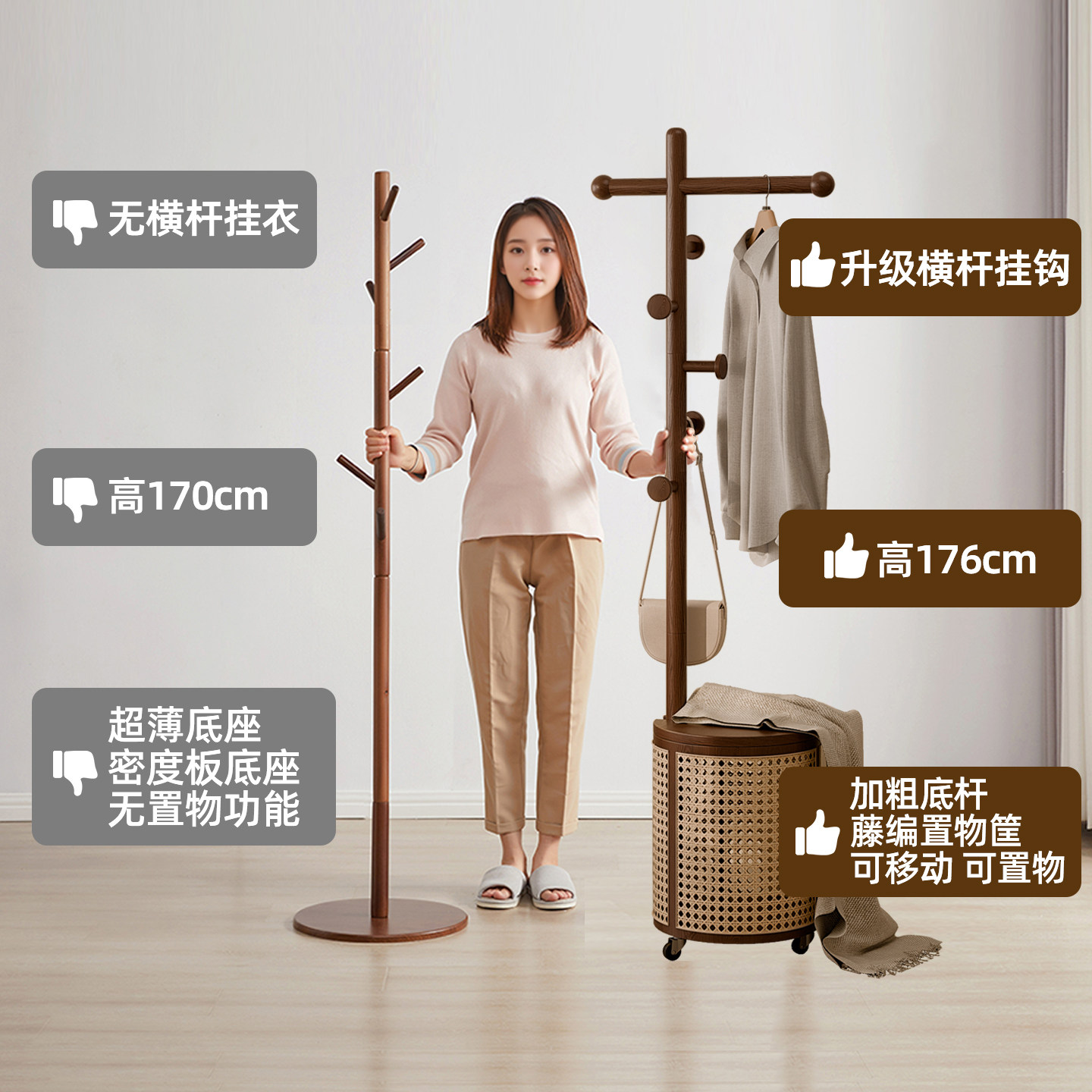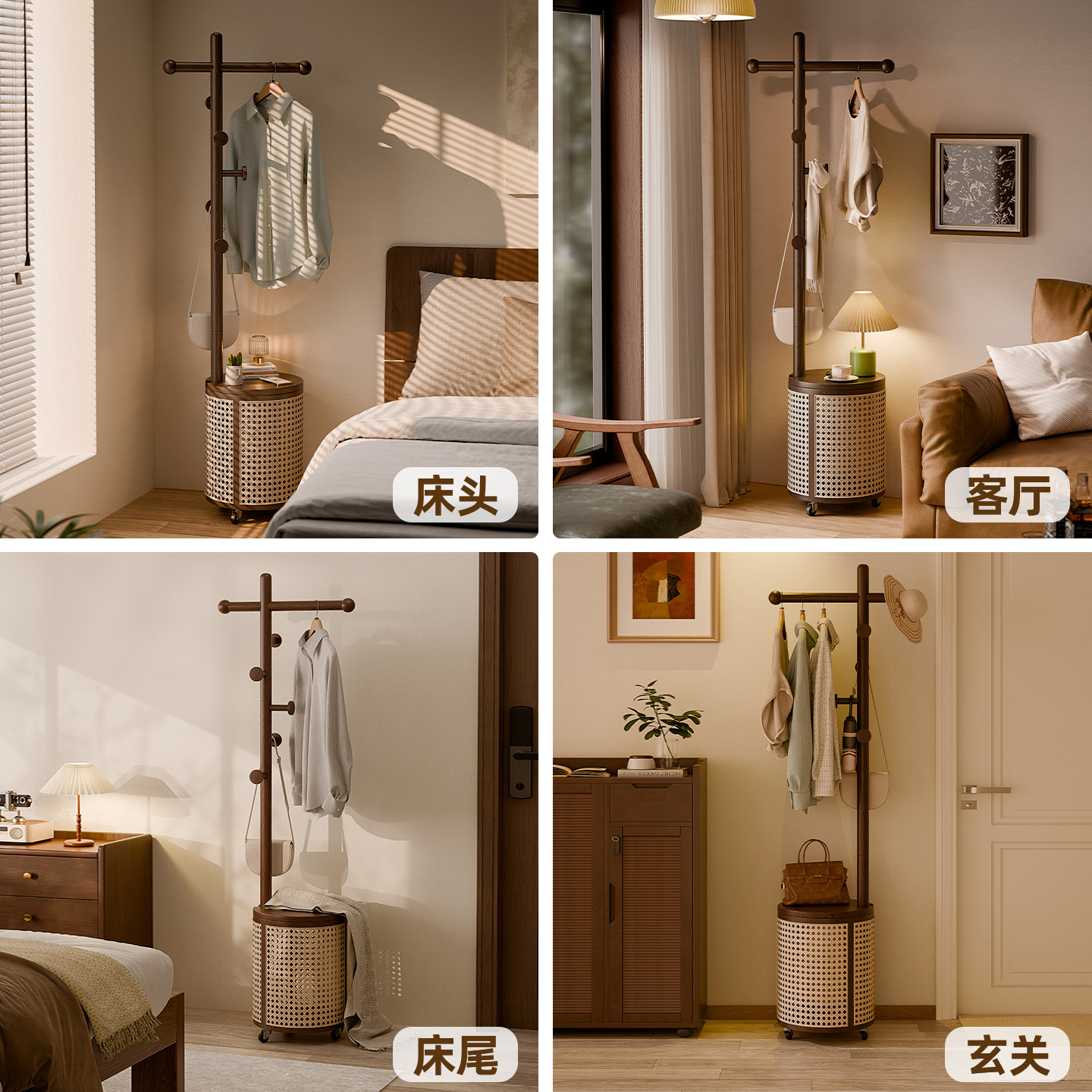 卧室落地挂衣架不锈钢床头衣帽架移动实木室内房间次净衣服置物架