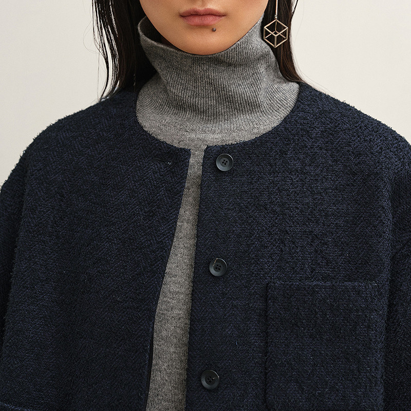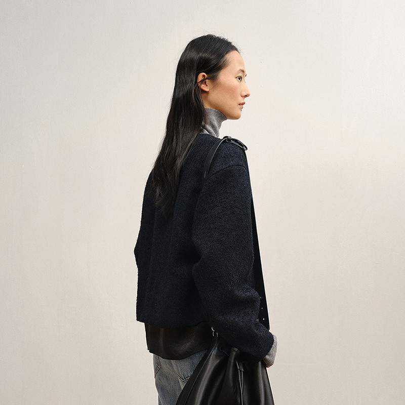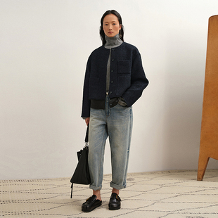 小香风假两件毛呢夹克外套2P0815690 LESS2025冬新款 商场同款
