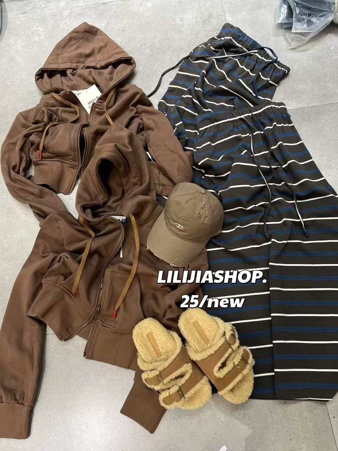 卫衣外套条纹一步裙套装 Miss家秋季 百搭显瘦连帽拉链长袖 时尚 韩版