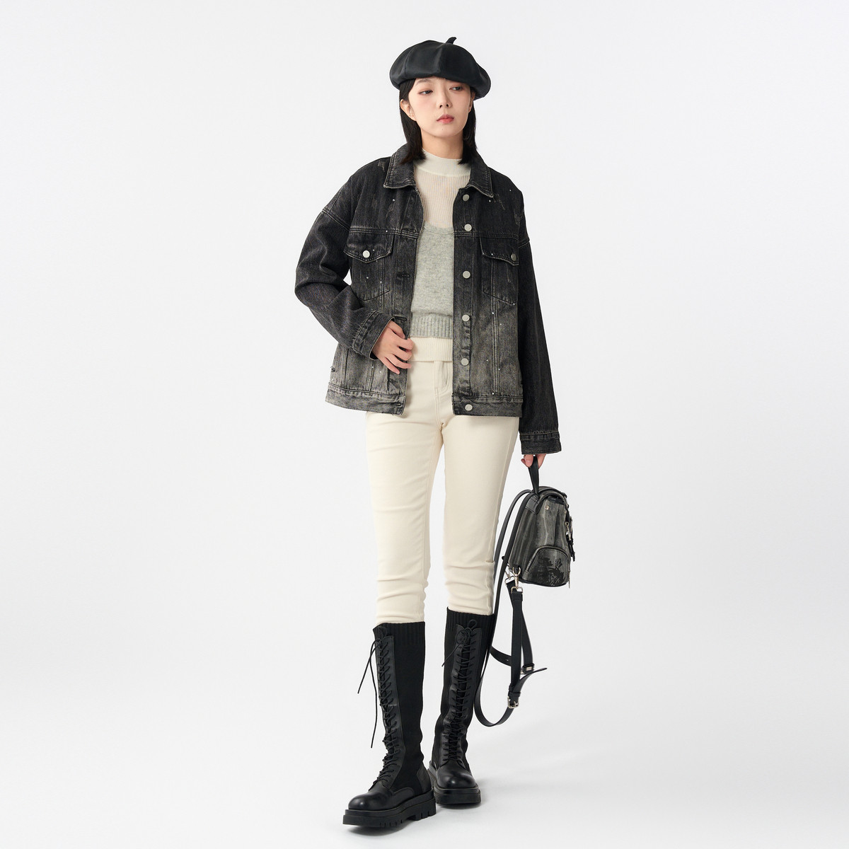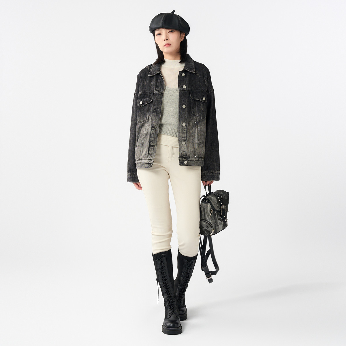 PANTS设计感侧开斜拉链伤痕涂层牛仔长裤 COATING ZIPPER JCAESAR