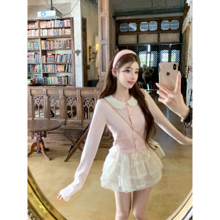 若语定制奶油小香 外套早秋上衣 25B粉色小香可拆卸娃娃领针织开衫