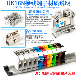 16N 接线端子排UK 16MM平方 纯铜件电压端子UK16N 厂家直销导轨式