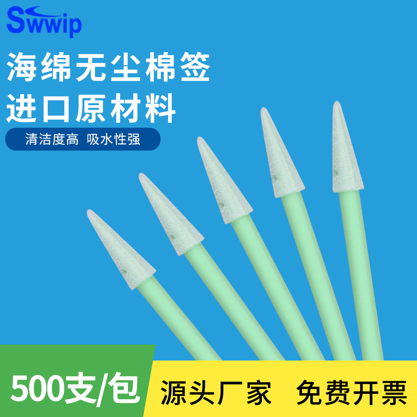 Swwip工业无尘棉签棒SW 包尖头海绵擦拭棒 FS750净化清洁500支