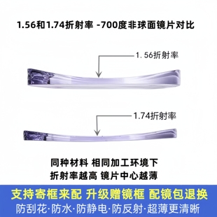 定制坊1.74超薄非球面0度防蓝光镜片 近视远视高散光高度数配镜片