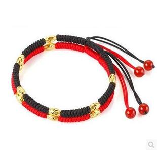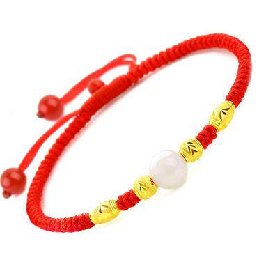 本命年24K黄金珠转运珠玛瑙珠脚链男女情侣红绳脚绳宝宝脚链编织