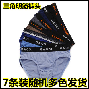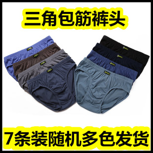 男士 底裤 纯棉内裤 头肥佬加大码 透气中青年三角中腰全棉短裤 7条装