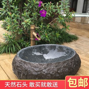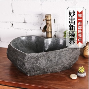石头洗手盆复古鹅卵石小号台上盆家用石材卫生间洗脸盆艺术洗面盆