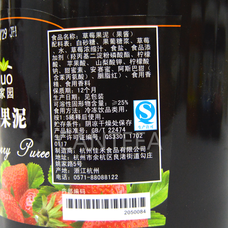 博多家园草莓果泥1300g 刨冰沙冰奶昔 哈密瓜芒果水蜜桃蓝莓果酱