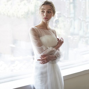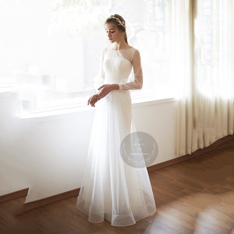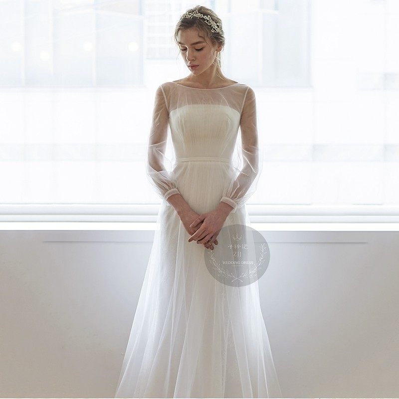 2020新款 轻婚纱超仙旅拍森系赫本出门纱结婚鱼尾公主 蕾丝新娘法式