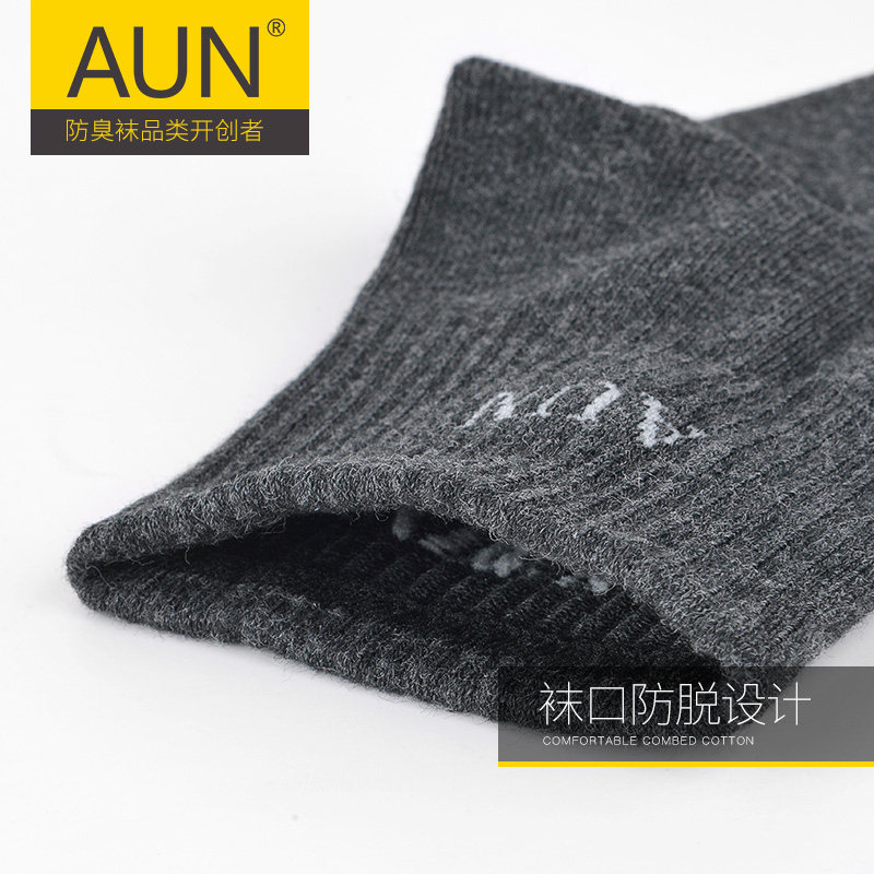 爱优恩银抗菌防臭运动袜子正品 精梳纯棉袜 AUN中高筒篮球跑步男士
