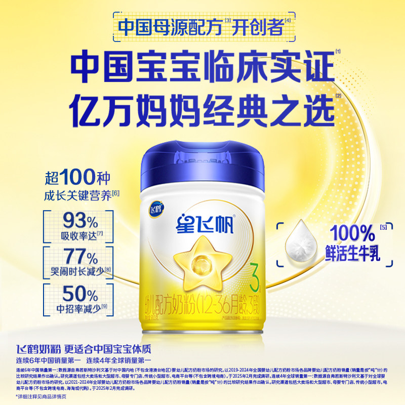 飞鹤星飞帆婴幼儿配方牛奶粉1 3段