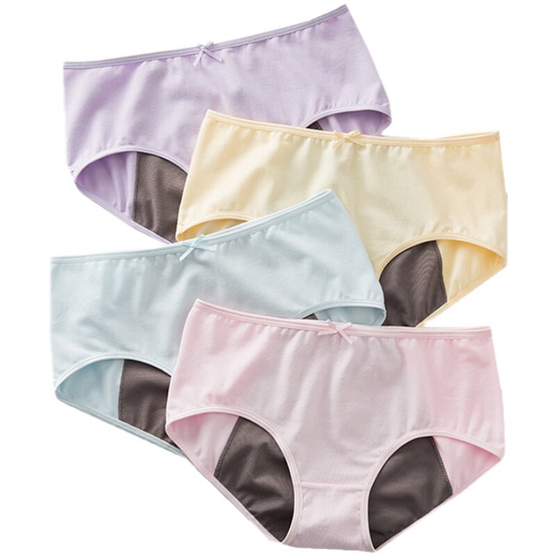 蝶安芬女士简约中低腰透气棉质少女防漏生理裤 黑粉紫蓝黄色 姨妈裤