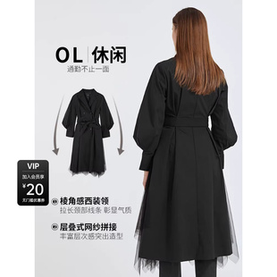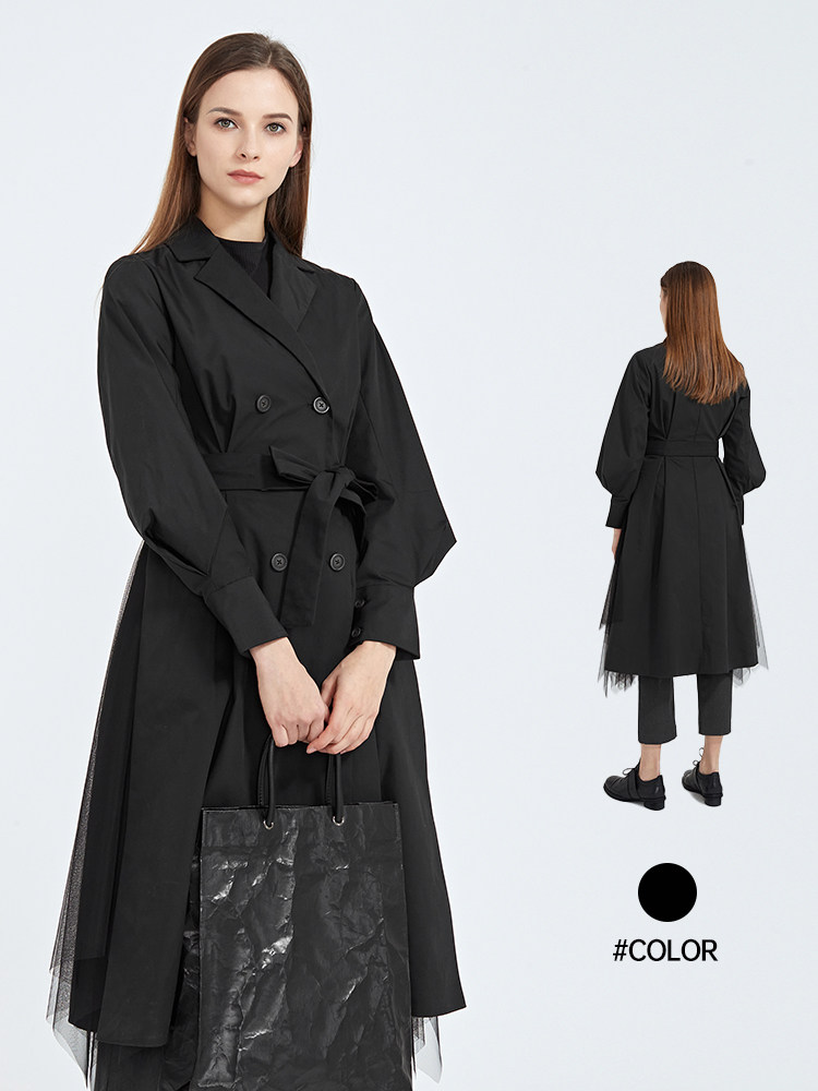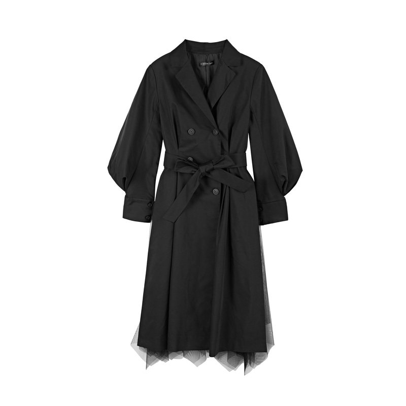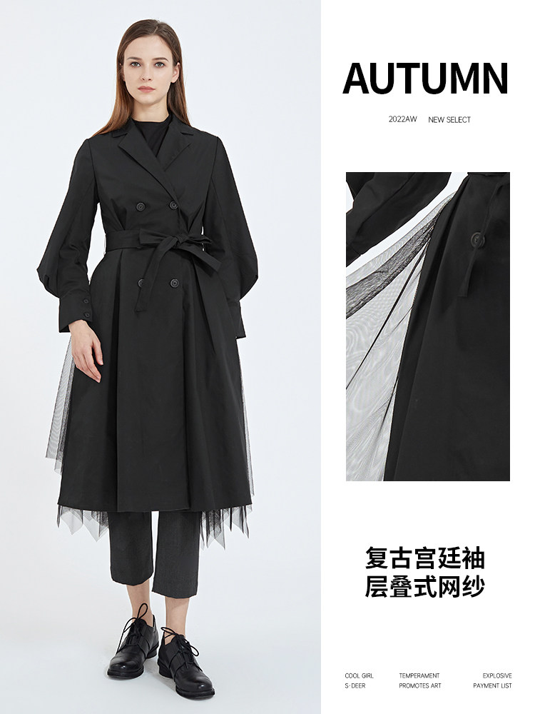 中长款 sdeer圣迪奥春秋装 黑色衬衫 法式 风衣S21181801 收腰灯笼袖