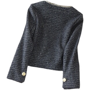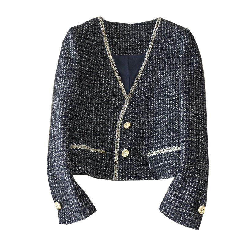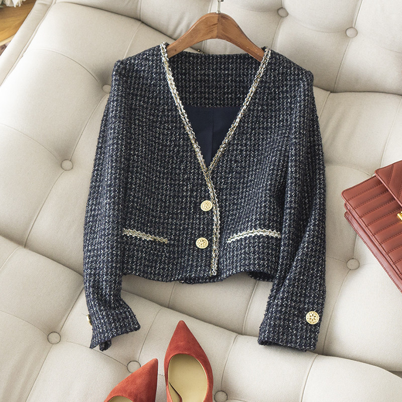 西装 复古精致小个子小香风彩色花纱羊毛外套早春新品 V领金扣短款