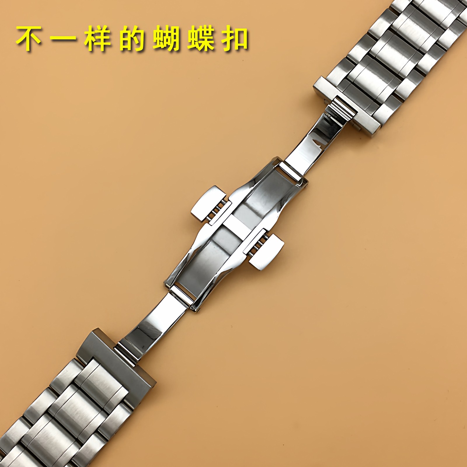 磨砂表带钢带实心不锈钢蝴蝶扣表链男士 金属哑光20mm22mm精钢配件