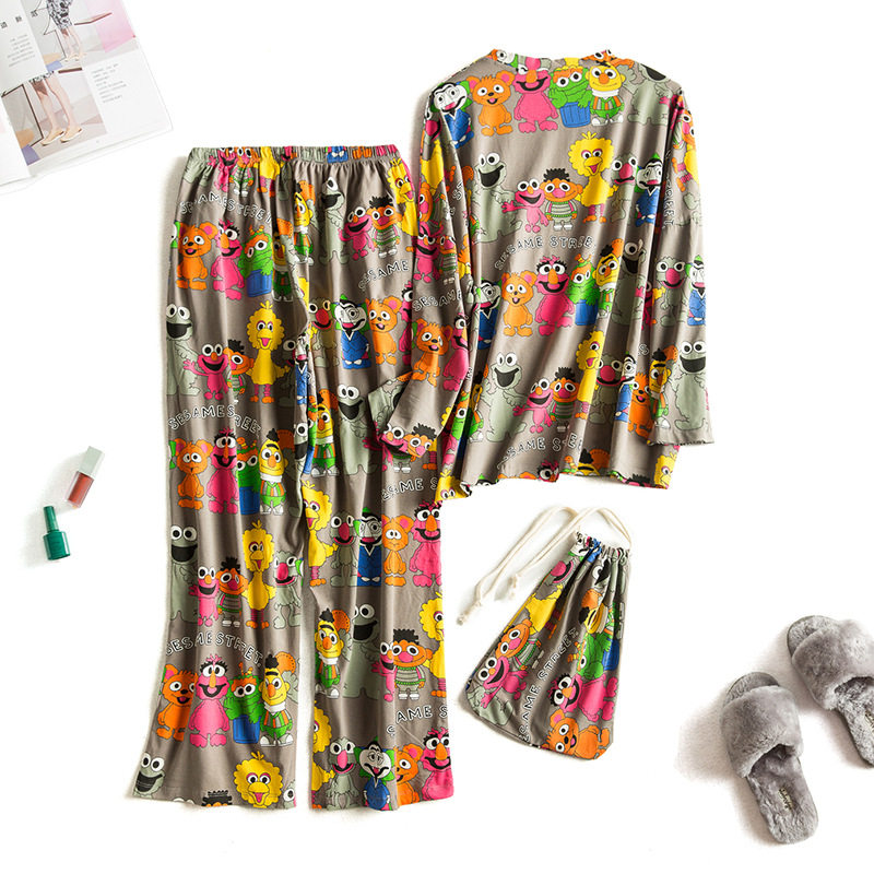 长袖 全棉大码 套装 女款 家居服 简约休闲秋季 芬腾春秋睡衣女纯棉开衫