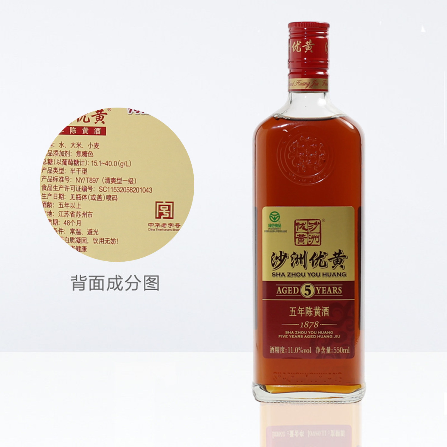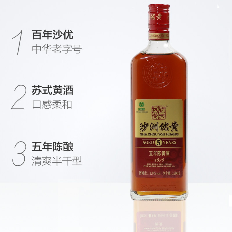 沙洲优黄五年陈550ml8瓶正宗半干型黄酒整箱1878陈酿