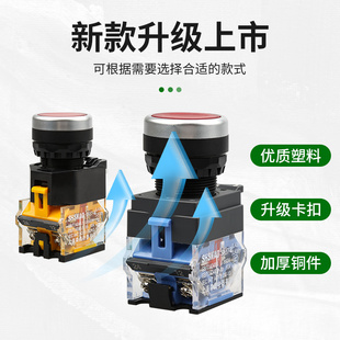 22MM 启动停止自复位点动按压式 按钮开关LA38 11BN电源带自锁圆形