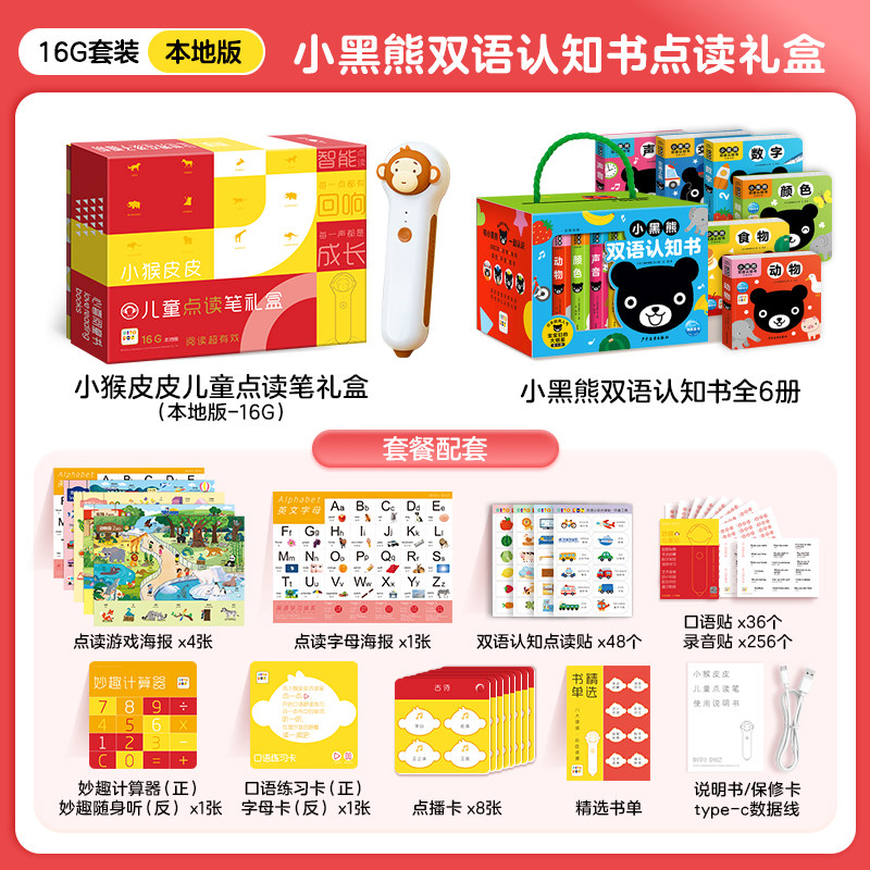 PIYOPEN小猴皮皮AI智能点读笔礼盒套装 8岁宝宝中英双语儿童早教学习机企鹅兰登德国百科幼儿认知小百科图画书小黑熊绘本故事书
