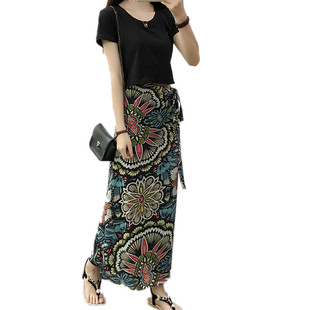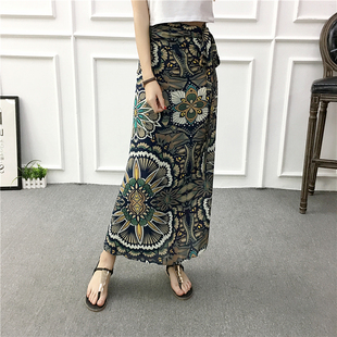 沙滩裙裹裙开叉长裙半身裙 波西米亚碎花中长裙系带一片式 夏季 新款