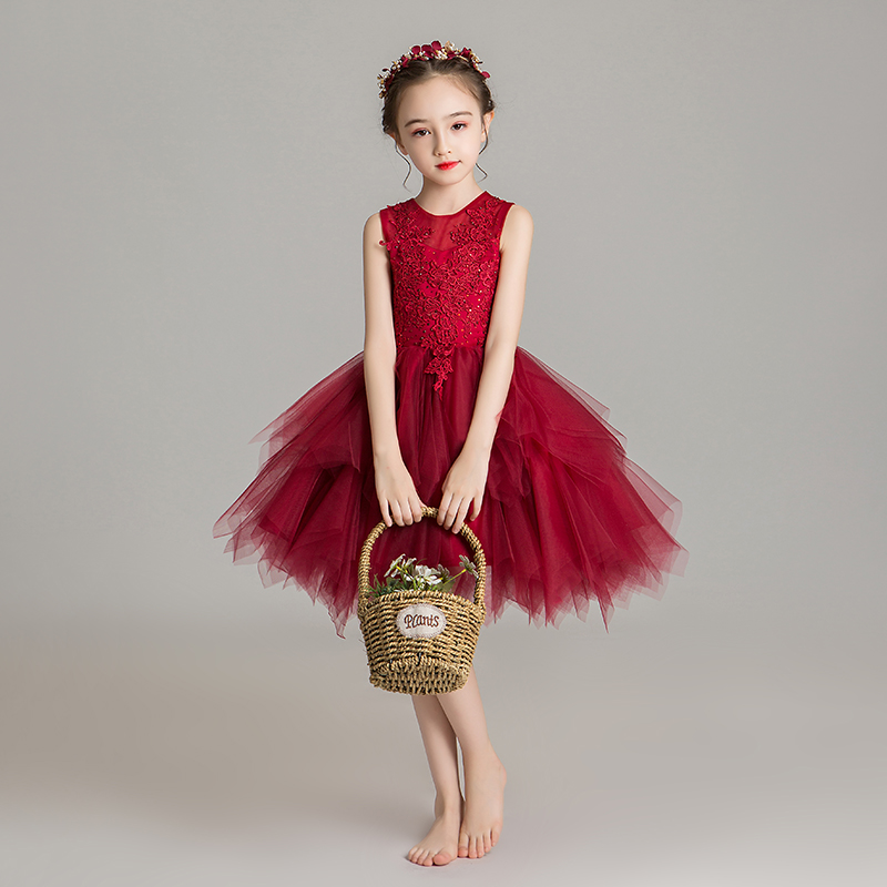 女童晚礼服蓬蓬纱小孩花童婚纱儿童公主裙高端宝宝生日蛋糕裙洋气