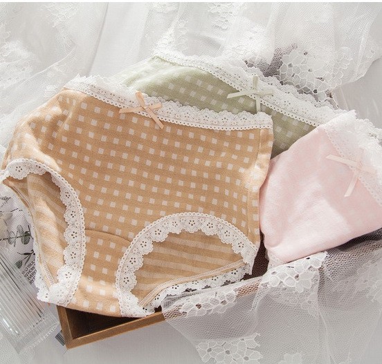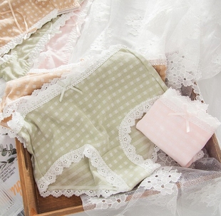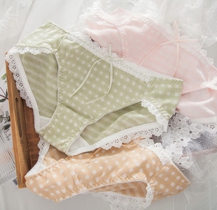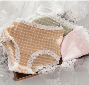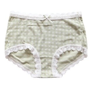 N577舒适女士中腰高腰纯棉面料格子图案可爱舒适女生内裤