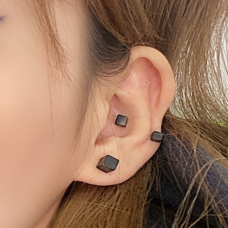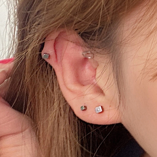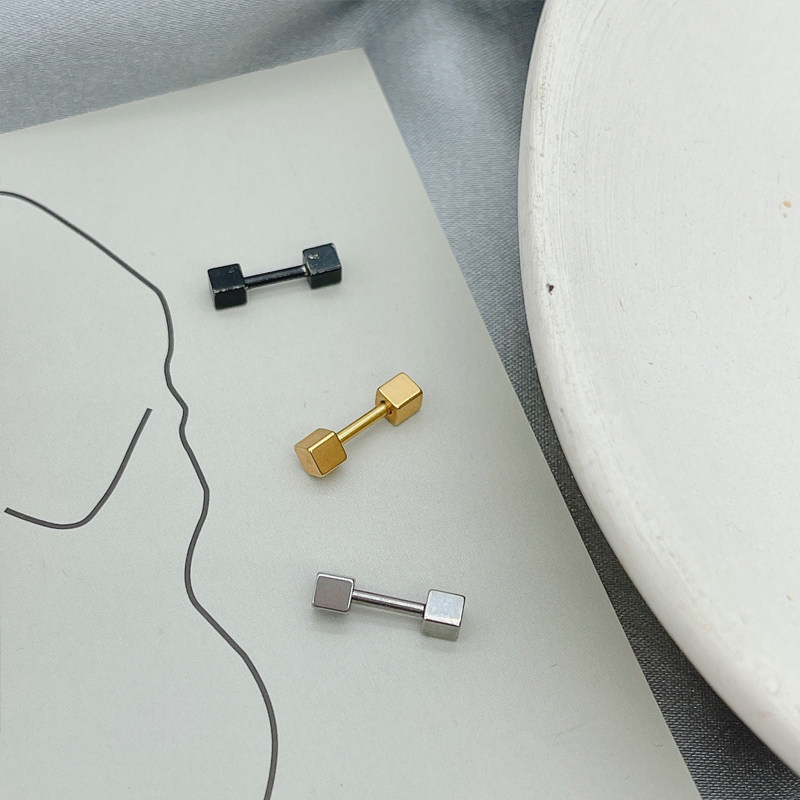 韩国钛钢耳钉方块螺丝杠铃前后两头耳软骨钉女健身运动立体耳钉