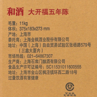 6瓶整箱海派特型半干黄酒 大开福五年陈1000ml 5年 上海老酒 和酒