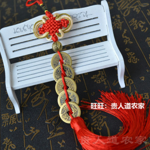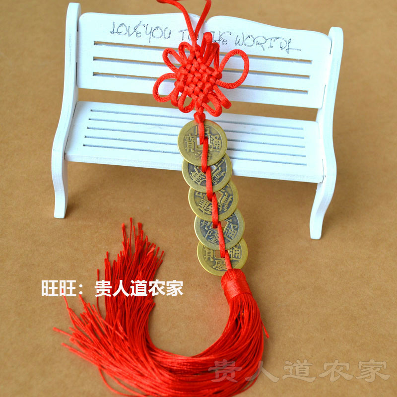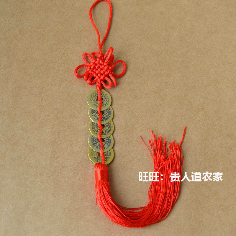 中国结五帝钱铜钱车挂仿古铜钱古风挂件吉祥如意车挂家居装 饰品