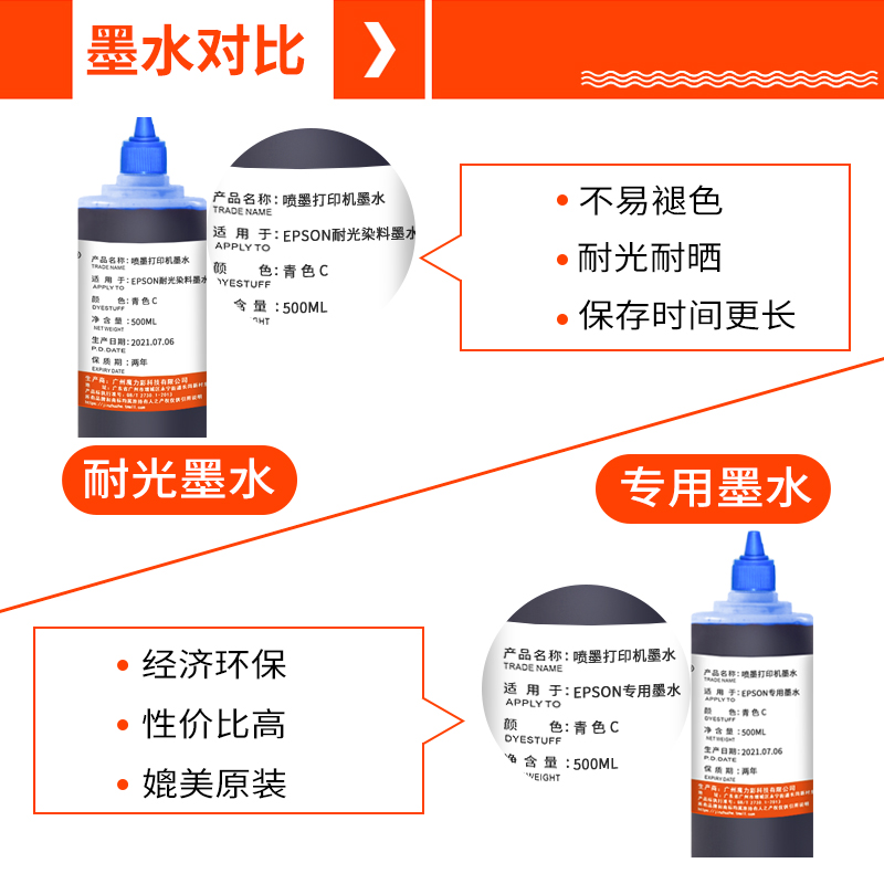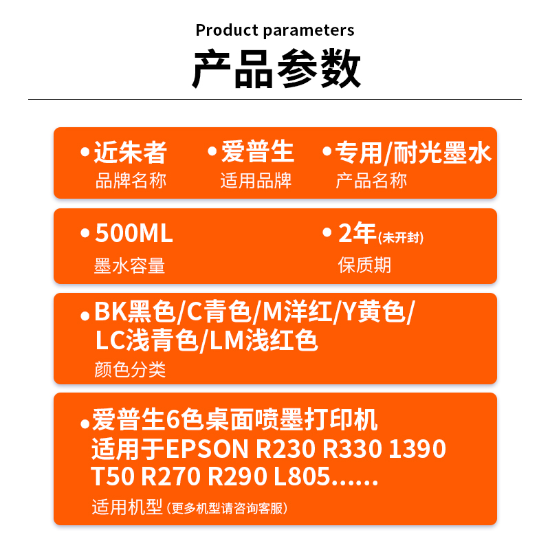 1390 R230墨水 L801 R270 R290 T6741 l850 L180 R330 近朱者适用epson打印机墨水 T50 爱普生l805墨水l1800