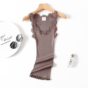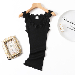 百搭性感蕾丝 蚕丝打底衫 出口意大利修身 螺纹无缝真丝背心吊带衫