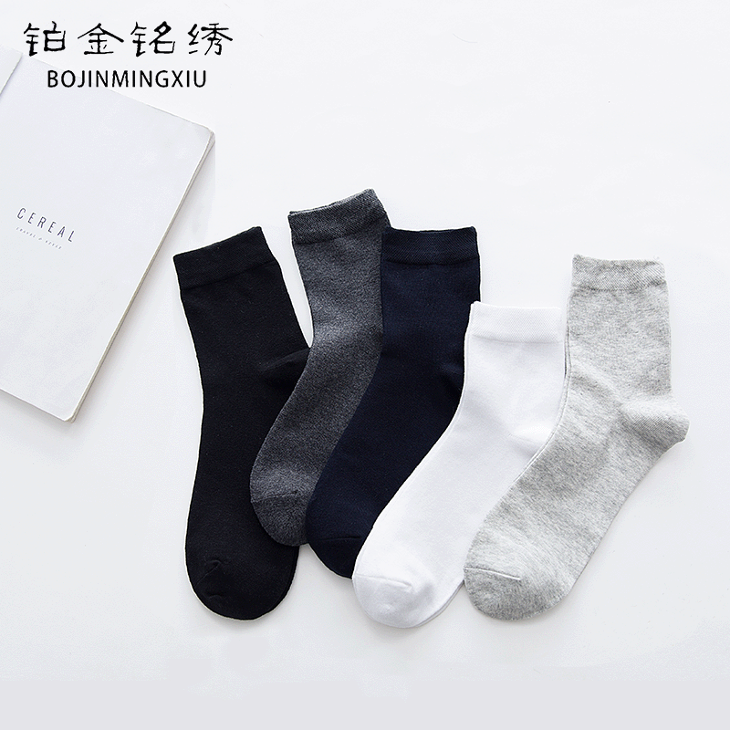 铂金铭绣新疆棉袜子男士 商务中筒吸汗防臭舒适透气长短袜 春夏四季