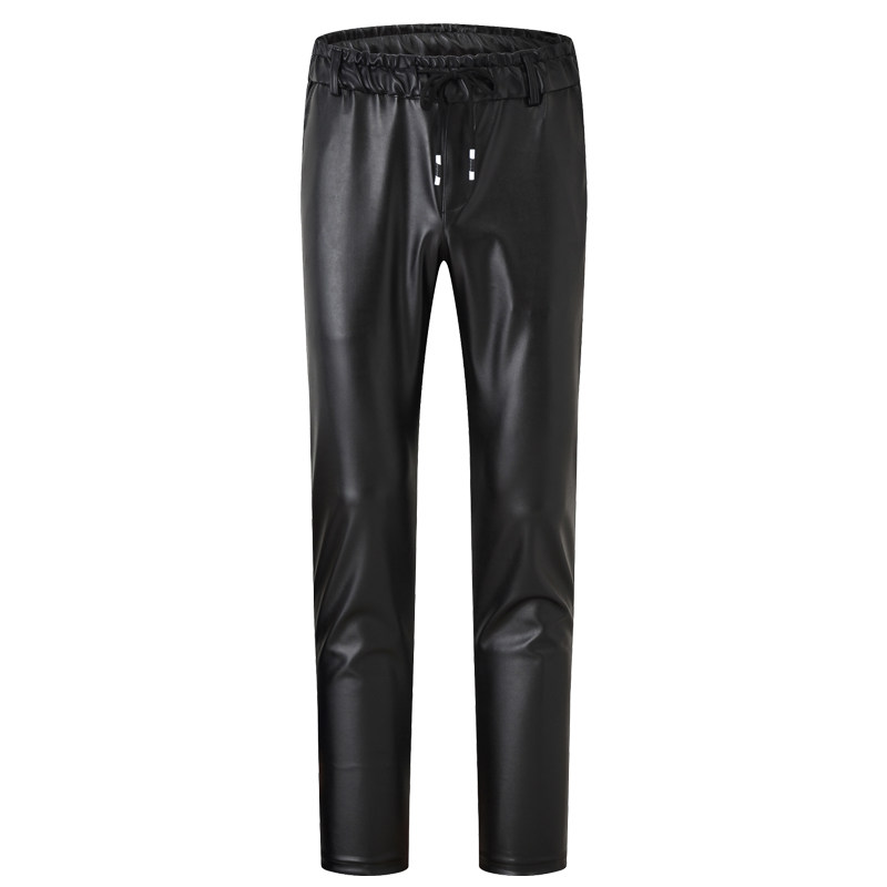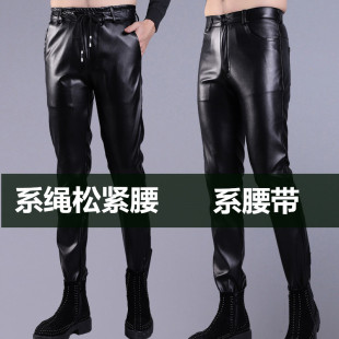 皮裤 男修身 韩版 夏季 防水紧身小脚裤 薄款 高弹力单层摩托车男士 秋季