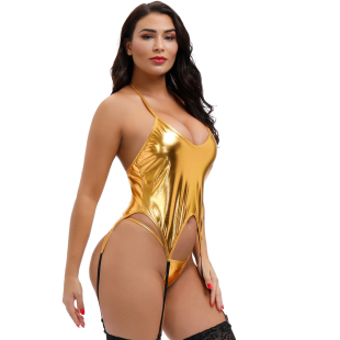 2020新款 吊袜带4根收腹吊袜带系脖仅上衣 欧美漆皮仿皮紧身连体式