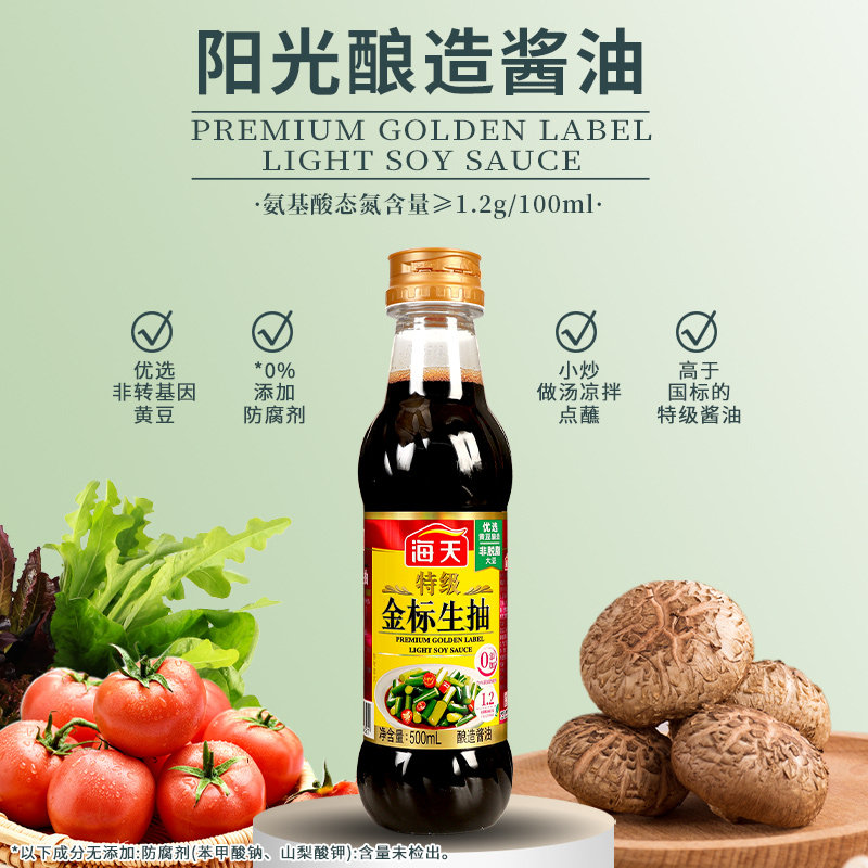 海天酱油特级金标生抽500mlx2瓶调味品炒菜凉拌火锅健康调料家用