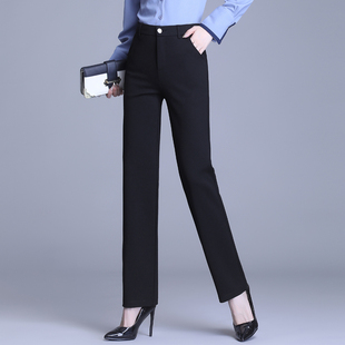 子潮 女秋冬加绒胖妹妹mm设计感高腰宽松显瘦休闲阔腿裤 黑色西装 裤