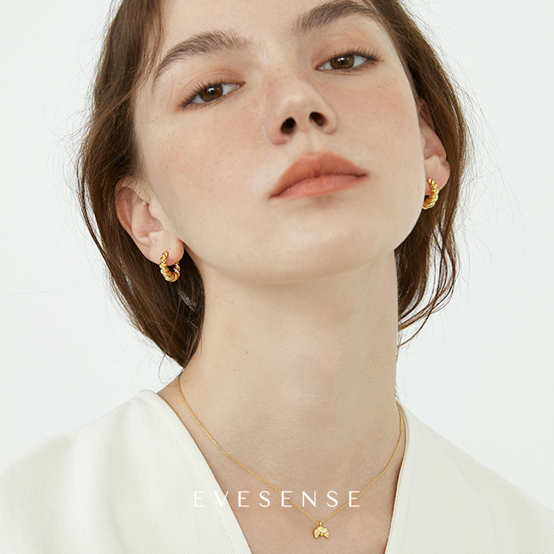 蜜蜂妈 气质简约双钻玫瑰金纯银耳环女轻奢小众耳圈耳扣圣诞礼物