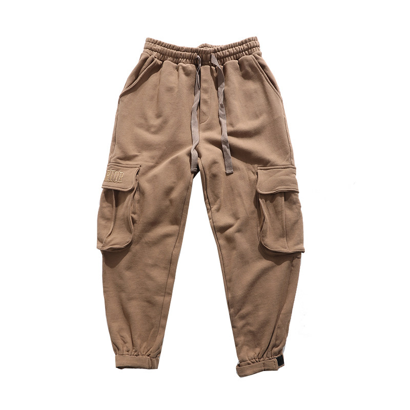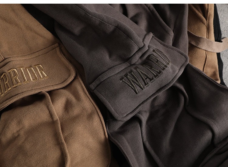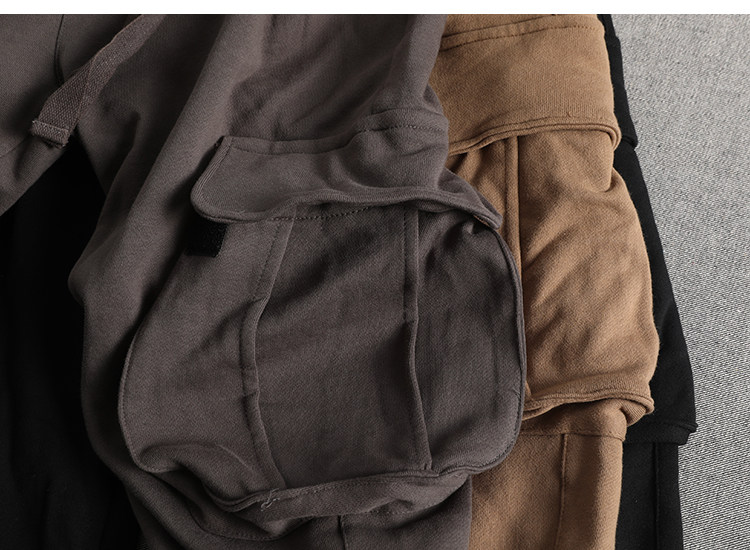 宽松休闲收口束脚卫裤 重磅水洗高克重毛圈料多袋潮裤 男 改良版 工装