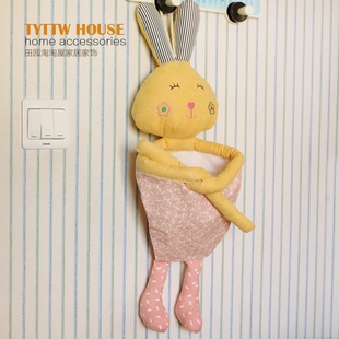 田园家居装 饰收纳用品墙饰壁饰 饰笔笔兔收纳卡哇伊布艺挂壁装