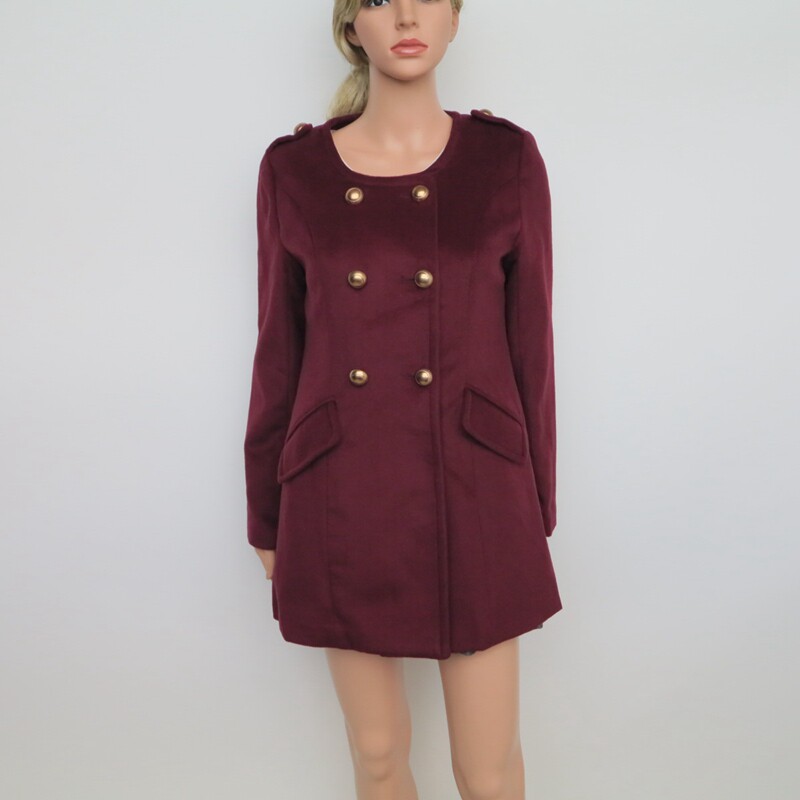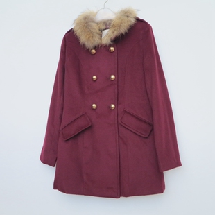 艾格淘特 女秋冬酒红色高档毛呢大衣外套4N4284 XS专柜正品