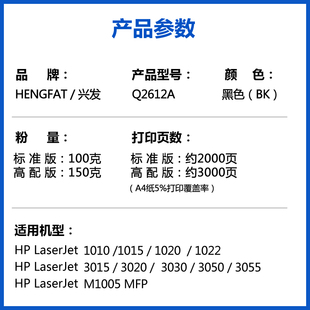 m1005mfp 1022 m1319f 兴发适用惠普m1005硒鼓hp1020打印机q2612a墨盒1020plus 3050 1018 3055 3052 HP1010