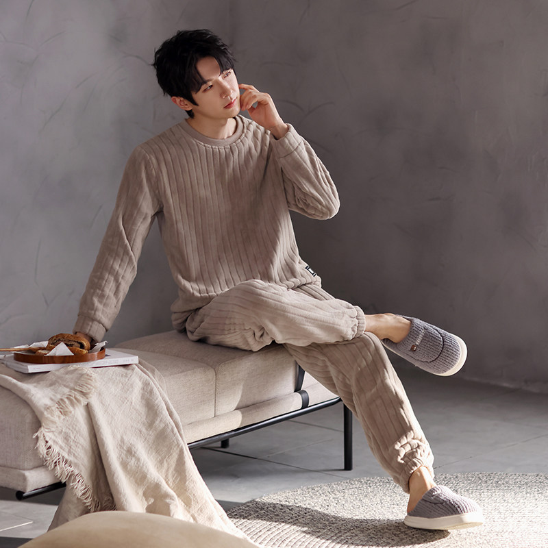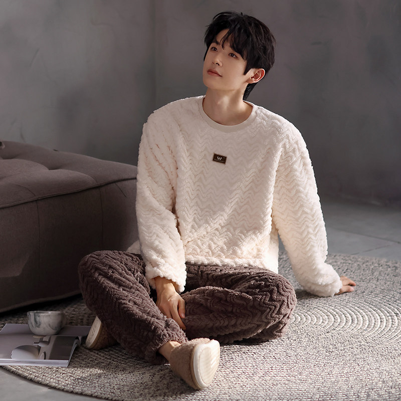 家居服套装 珊瑚绒睡衣男冬季 宽松保暖男士 长袖 法兰绒加厚春秋冬款