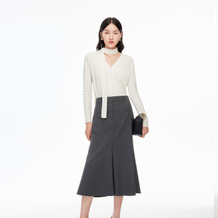 女H版 新款 型百褶裙摆纯色复古325416021 Moda半身裙2025冬季 Vero